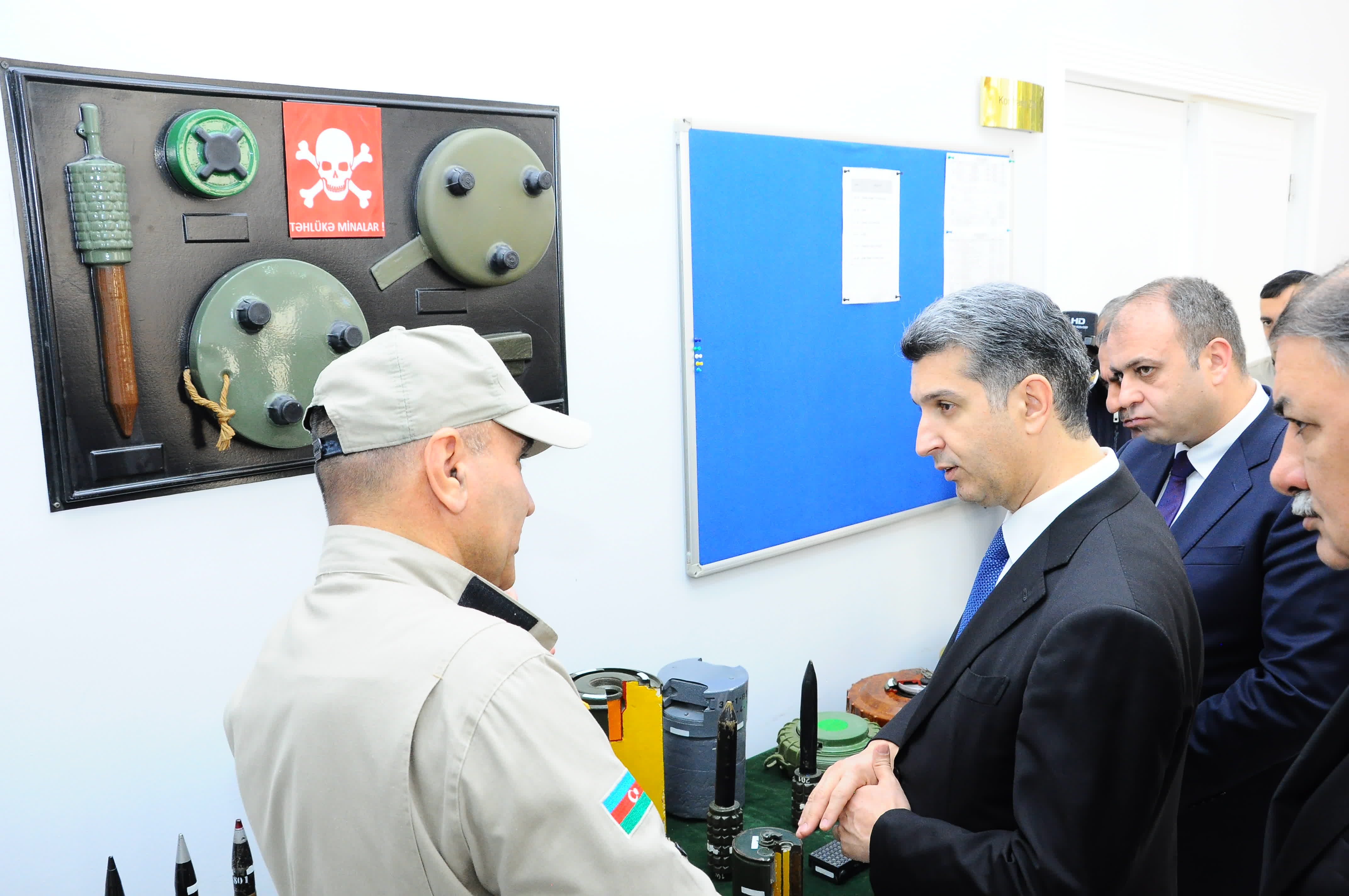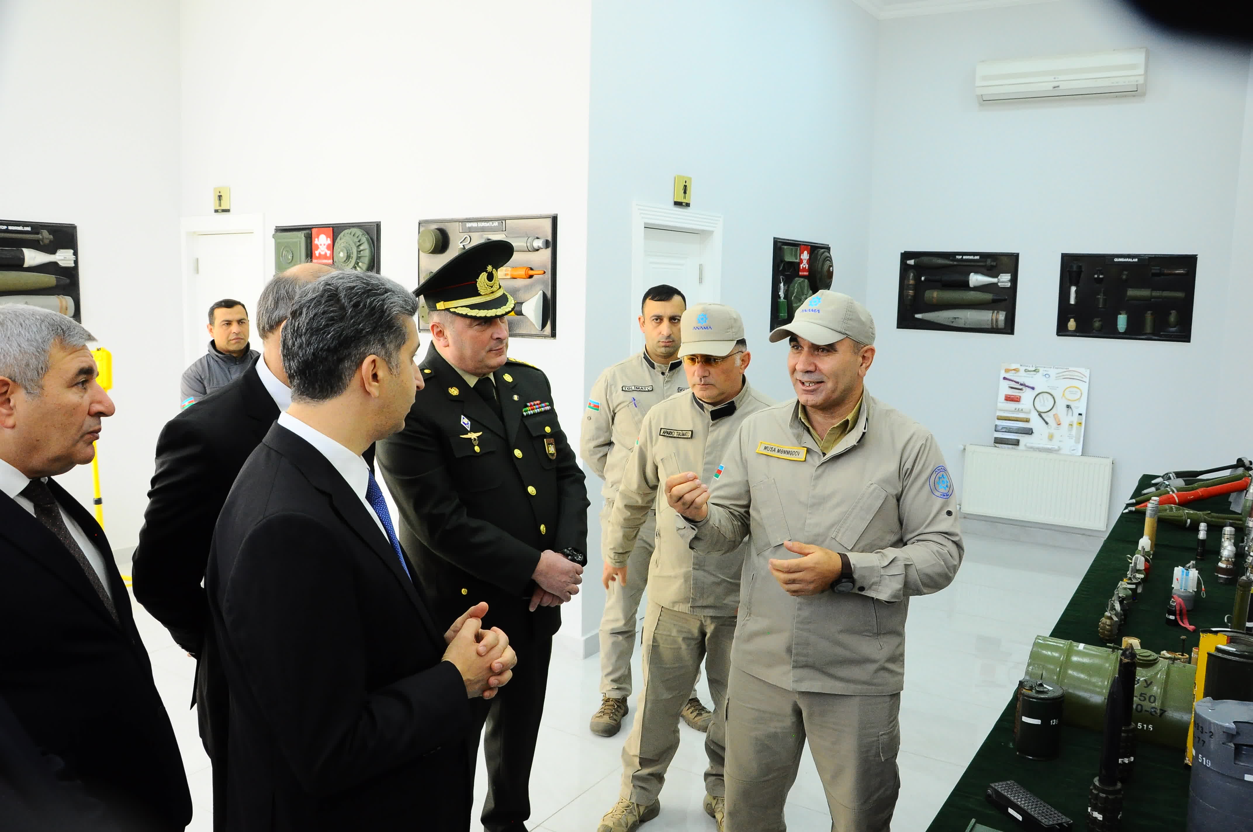 Mina və hərbi sursatlar sərgisinə baxış keçirildikdən sonra Minaaxtaran itlərin Seleksiya Mərkəzi barədə məlumat verilib, xatirə fotosu çəkdirilib.