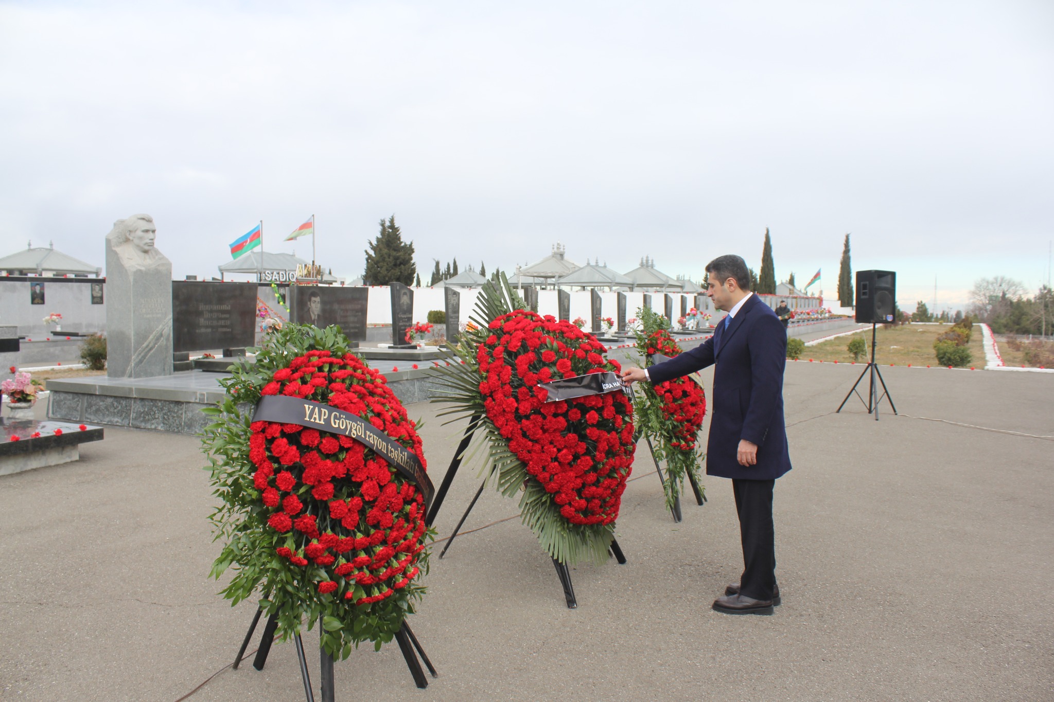 Göygöl Rayon İcra Hakimiyyətinin başçısı Elvin Paşayev, rayonun hüquq-mühafizə orqanlarının, idarə-müəssisə və təşkilat rəhbərləri, Şəhid ailələri və Qazilər, ictimaiyyət nümayəndələri 20 Yanvar faciəsinin 35-ci ildönümü ilə əlaqədar Göygöl şəhər Şəhidlər xiyabanına əklil qoyaraq, Azərbaycanın müstəqilliyi və ərazi bütövlüyü uğrunda mübarizədə canlarını qurban vermiş qəhrəman Vətən övladlarının məzarlarını ziyarət edib, ruhlarına dualar oxuyub, unudulmaz və müqəddəs xatirələrini dərin hüznlə yad ediblər.