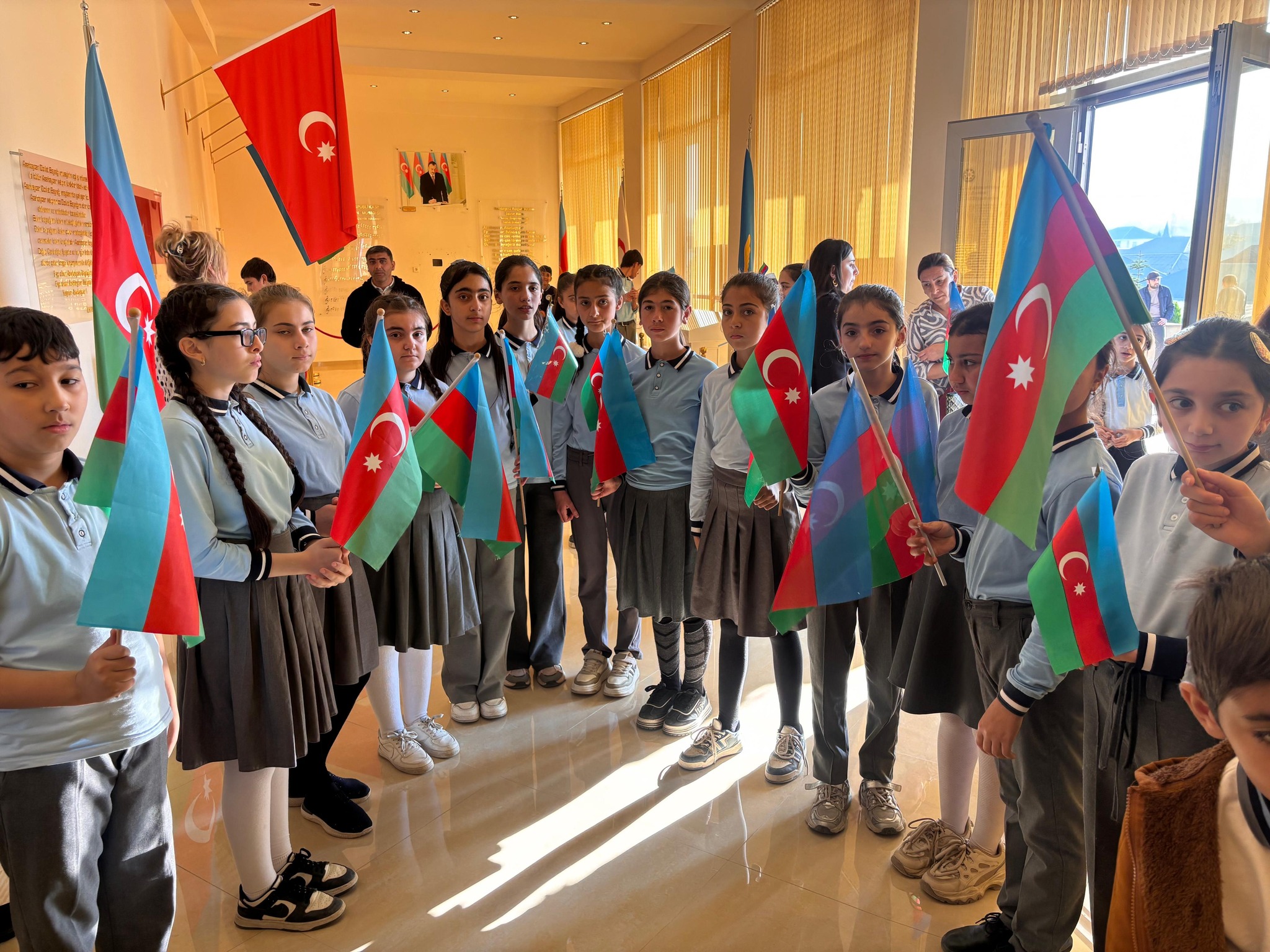 “Konstitusiya və Suverenlik İli” çərçivəsində keçirilən silsilə tədbirlər çərçivəsində Göygöl rayon Dövlət Rəmzləri Muzeyində 9 Noyabr - Dövlət Bayrağı Günü münasibətilə ümumrayon tədbiri təşkil olunub. Tədbirdə Rayon İcra Hakimiyyətinin əməkdaşları, təhsil və mədəniyyət işçiləri, məktəblilər və ictimaiyyət nümayəndələri iştirak ediblər.