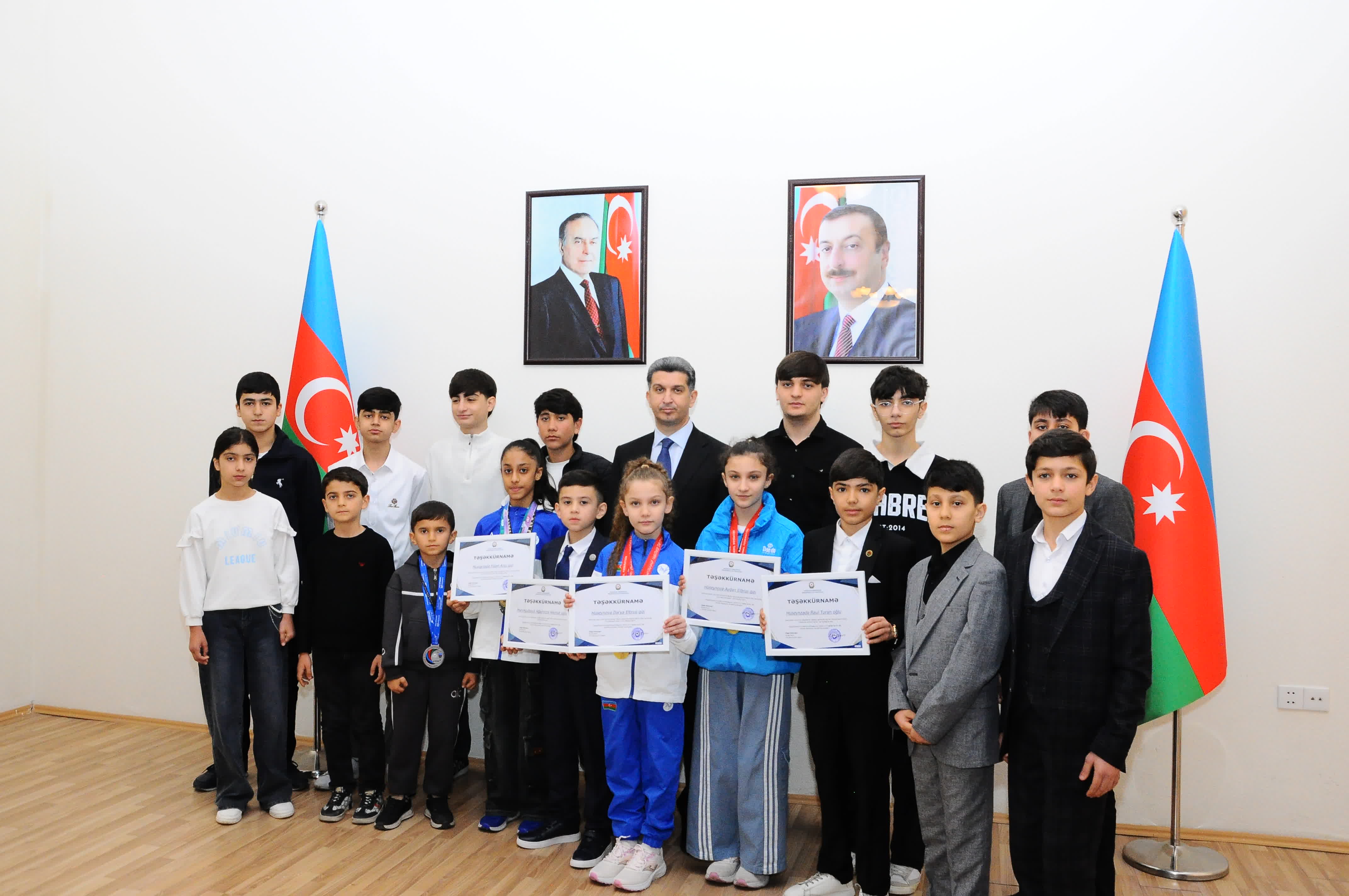 Görüşdə il ərzində uğurlu nəticələri ilə fərqlənən idmançılara təşəkkürnamələr təqdim olunub, kollektiv foto çəkilib.