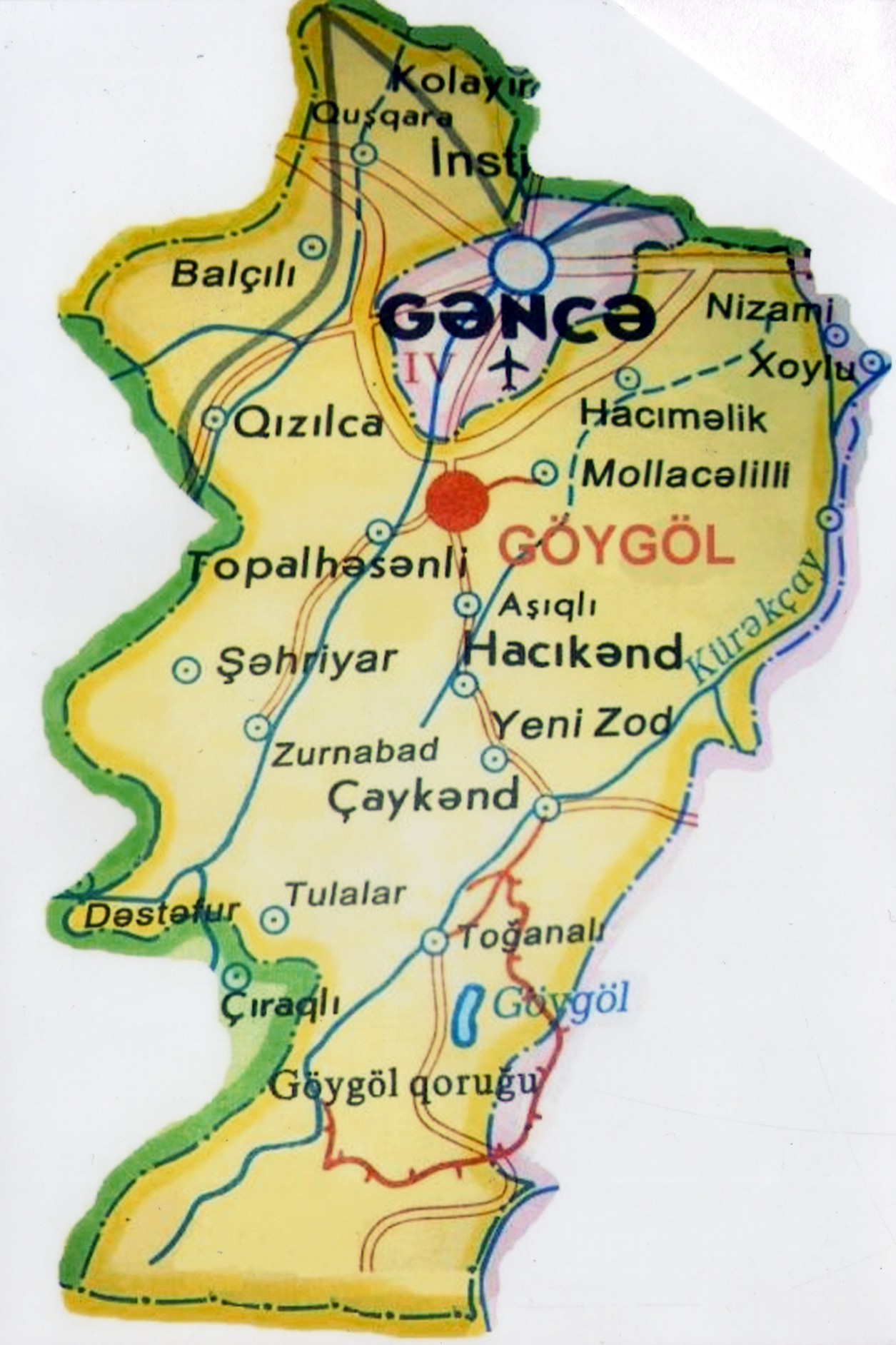 Rayon ərazisindən Gəncə-Daşkəsən və Bakı-Tblisi magistral avtomobil yolları keçir. Rayon mərkəzindən 15 km məsafədə Gəncə dəmir yolu stansiyası, 12 km məsafədə isə Gəncə hava limanı yerləşir. Respublikamızın paytaxtı Bakı şəhəri ilə rayon mərkəzi arasındakı məsafə 364 km-dir.